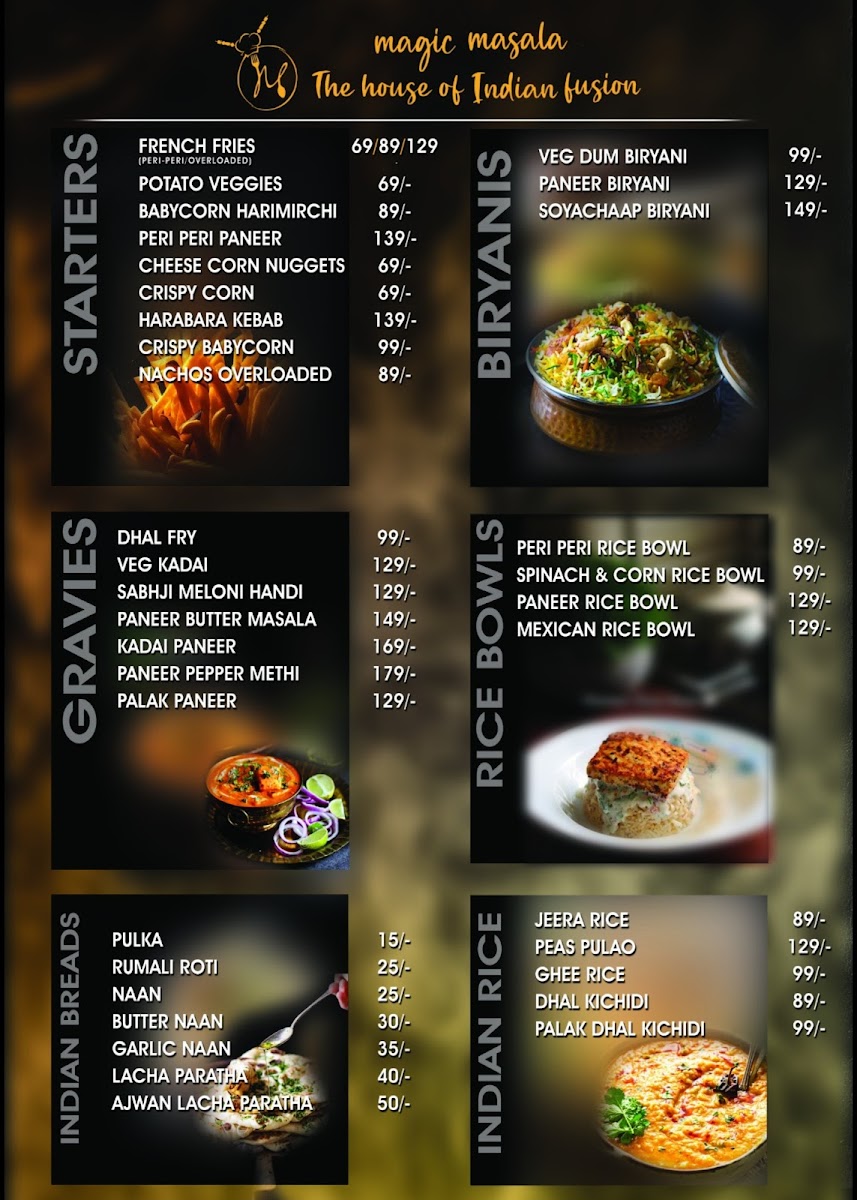 Welcome to Magic Masala, The house of Indian fusion, a vibrant café located in the heart of Tirupati. Specializing in innovative Indian fusion cuisine, this establishment is a treasure trove of flavors that seamlessly blends traditional Indian dishes with international influences.